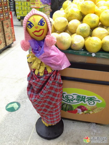 長春一超市驚現(xiàn)水果怪 8個(gè)柚子做柚子超人