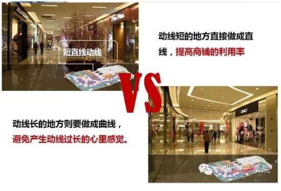 2、店鋪臨面和動(dòng)線長(zhǎng)度要結(jié)合考慮。從長(zhǎng)度的角度考慮,在經(jīng)過所有店鋪的前提下,總長(zhǎng)度愈短愈好。但是如果動(dòng)線設(shè)計(jì)適當(dāng)增加一點(diǎn)長(zhǎng)度之外,可以使一部分店鋪的臨面增加,則效果更好。
