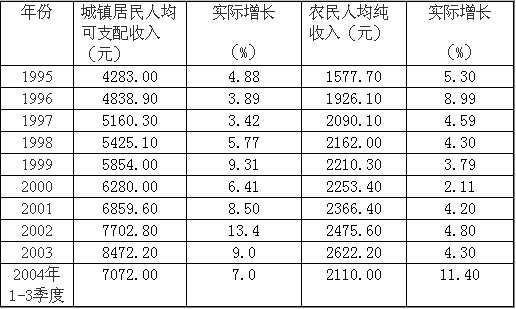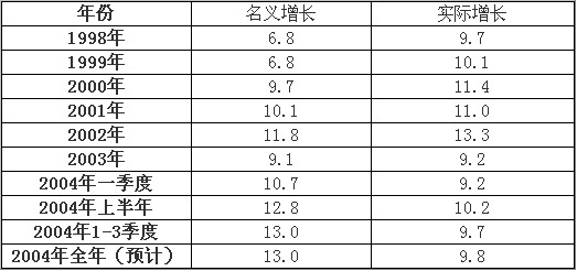 投資、消費(fèi)和出口是拉動(dòng)經(jīng)濟(jì)增長(zhǎng)的“三架馬車”,但是今年上半年,經(jīng)濟(jì)運(yùn)行中存在投資和出口快、消費(fèi)慢的問題。三季度以來,在國(guó)家宏觀調(diào)控政策作用下,部分行業(yè)投資過快增長(zhǎng)的局面被有效抑制,消費(fèi)需求增速不斷加快,投資和消費(fèi)不協(xié)調(diào)增長(zhǎng)的問題有所改善。預(yù)計(jì)全年消費(fèi)品零售額名義增長(zhǎng)將達(dá)13.1%,比2003年提高4個(gè)百分點(diǎn),消費(fèi)需求對(duì)經(jīng)濟(jì)增長(zhǎng)的貢獻(xiàn)率將明顯高于2003年。預(yù)計(jì)2005年消費(fèi)品零售額增速將略低于2004年,但是,最終消費(fèi)對(duì)經(jīng)濟(jì)增長(zhǎng)的貢獻(xiàn)率將呈上升趨勢(shì)。