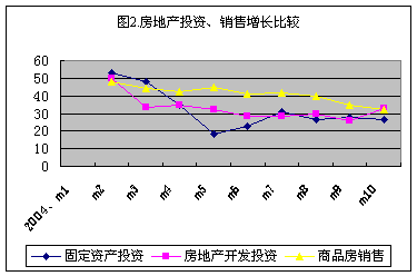 從房地產(chǎn)投資看,今年在國(guó)家宏觀調(diào)控政策的作用下,投資總額增速穩(wěn)步回落,但房地產(chǎn)投資卻始終保持接近30%的高增長(zhǎng)(如圖2所示),1-10月份城鎮(zhèn)固定資產(chǎn)投資增長(zhǎng)29.5%,比一季度回落18.3個(gè)百分點(diǎn),10月份投資增速繼續(xù)比上月回落1.5個(gè)百分點(diǎn);1-10月房地產(chǎn)開發(fā)投資增長(zhǎng)28.9%,僅比一季度回落5個(gè)百分點(diǎn),當(dāng)月房地產(chǎn)投資增速則比上月提高7.2個(gè)百分點(diǎn)。從商品房銷售看,自1999年我國(guó)商品房銷售開始出現(xiàn)快速增長(zhǎng)的局面,距今已有5、6年時(shí)間,今年依然增速不減。1-10月商品房銷售增長(zhǎng)31.9%,連續(xù)5-6年保持30%以上的增長(zhǎng)是其他商品無法媲美的。從商品價(jià)格來看,今年漲幅也較大,特別是大中城市房?jī)r(jià)漲幅屢創(chuàng)新高,1-10月全國(guó)商品房平均銷售價(jià)格同比上漲11.4%,漲幅是1996年以來同期的較高增幅。房地產(chǎn)業(yè)呈現(xiàn)產(chǎn)銷兩旺的局面。
