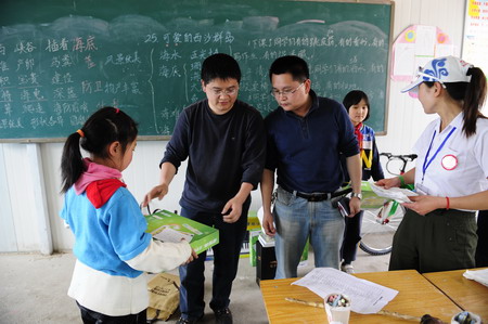 聽(tīng)說(shuō)“送心愿”的叔叔到了,孩子非常高興。在板房學(xué)校里奔走相告。