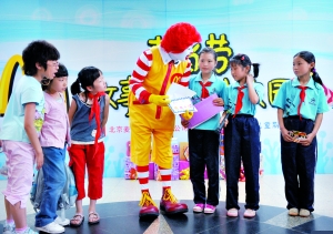 昨天下午,麥當勞在中關(guān)村二小與學生們進行互動。記者 李強 攝