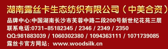 2008年,美國天力國際商業(yè)集團(tuán)與中國湖南金鷹服飾集團(tuán)展開國際合作,共同注資成立湖南露絲卡生態(tài)紡織有限公司(中美合資),WOODSILK露絲卡品牌正式進(jìn)入中國市場(chǎng),并將根據(jù)中國市場(chǎng)的特色和消費(fèi)需求,全面整合設(shè)計(jì)、生產(chǎn)多系列高品質(zhì)的功能性生態(tài)健康貼身服飾與家紡產(chǎn)品,給中國人民的穿著和睡眠帶來健康與舒暢的享受。