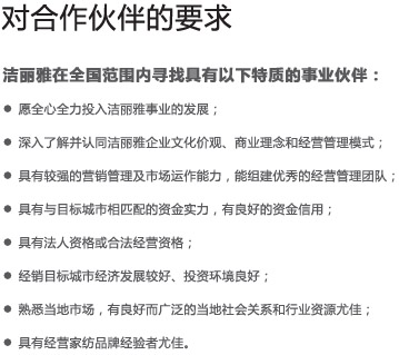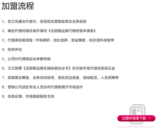 為減少經(jīng)銷商籌謀和自行摸索經(jīng)營方略的時間,確保經(jīng)銷商的業(yè)務(wù)經(jīng)營能夠迅速順利的進(jìn)入軌道,潔麗雅提供全程支持,與合作伙伴共同發(fā)展。