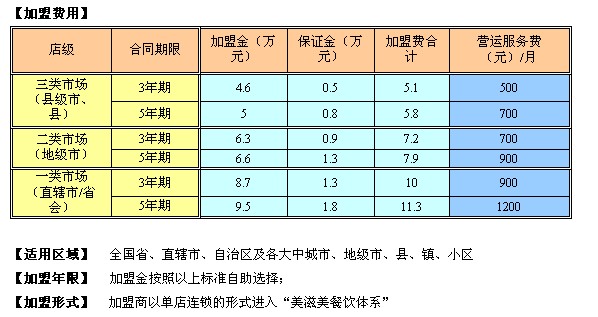 美滋美是一個適合中小投資者加盟連鎖的中式快餐項目。美滋美在加盟連鎖中十分注意“孵化”作用,力求用美滋美經(jīng)驗總結(jié)而成的《管理手冊》系列和全方位的輔助支持系統(tǒng)使每個加盟者“易懂、易行”,省時省心,輕松創(chuàng)業(yè)。