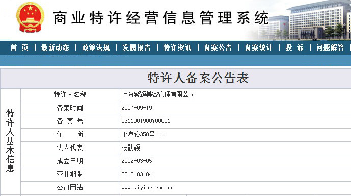 紫穎美容管理有限公司是國家商務部第一批頒布、辦理特許加盟的美容行業(yè)范疇的企業(yè)之一