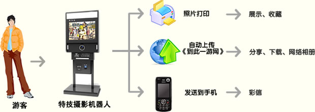 愛特影現(xiàn)提供1000個高清場景,包含了景點景區(qū)、卡通動漫、電影電視、中外明星百姓、游戲等多種高清場景。同時愛特影機(jī)器人自動連接網(wǎng)絡(luò),定期從官網(wǎng)下載最新最時尚的潮流場景,滿足個性潮人的挑剔。愛特影拍攝出來的照片自動上傳至《到此一游》網(wǎng)站,消費(fèi)者可根據(jù)照片編號找到自己的照片。網(wǎng)站提供電子照片下載,也提供基于個人照片的個性化游戲。
