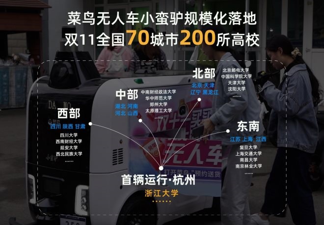菜鳥雙11期間350輛無人車進校園 覆蓋超200多所高校