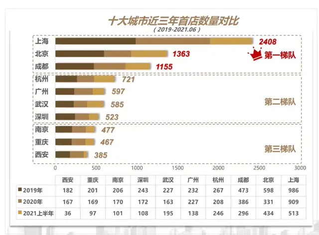在“首店經(jīng)濟(jì)”上,武漢交出了亮眼的成績(jī),報(bào)告顯示,自2019年至2021年上半年,武漢引進(jìn)和培育的首店共計(jì)585家,位居全國(guó)第六。