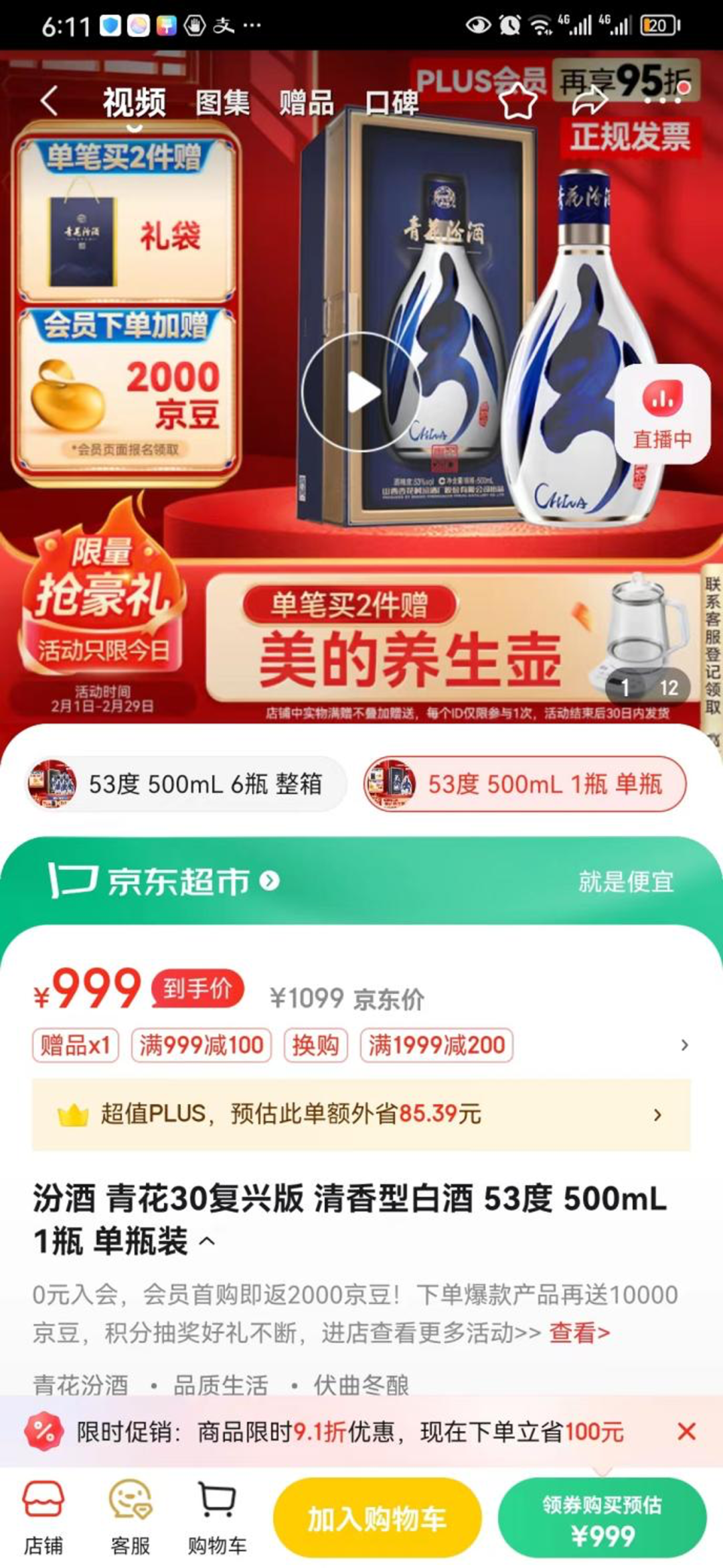 其實,經(jīng)銷商數(shù)量增長和合同負債金額出現(xiàn)瓶頸并不奇怪。前面提到的汾酒高端大單品青花汾30復興版指導價為1199元,目前某電商平臺到手價是999元,價格明顯倒掛。