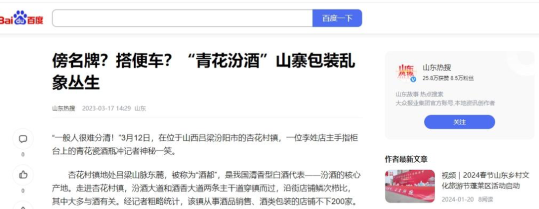 出現(xiàn)這種現(xiàn)象,節(jié)點財經(jīng)認為,或許和山西汾酒對品牌的管控能力有關。且不說1998年轟動全國的“山西假酒案”,近年來仍有媒體報道稱,在杏花村鎮(zhèn),模仿青花汾酒“汾”字瓶的現(xiàn)象很普遍。