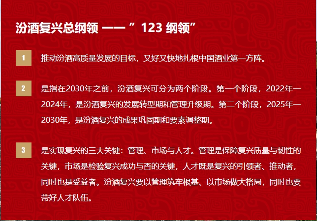現(xiàn)任山西汾酒董事長袁清茂在2021年掌舵后,談到汾酒產(chǎn)業(yè)的核心競爭力時,就指出關鍵在于品牌復興。他認為,要通過提升品牌形象、品牌文化、品牌價值,來實現(xiàn)品牌復興。