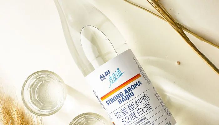 6月份,在中國市場風頭正勁的平價社區(qū)超市ALDI奧樂齊推出了一款售價僅為9.9元的白酒。其瓶身上清晰地標著:濃香型純糧52度白酒,五種純糧釀造,傳統(tǒng)固態(tài)發(fā)酵,綿柔濃香,回味甘甜。
