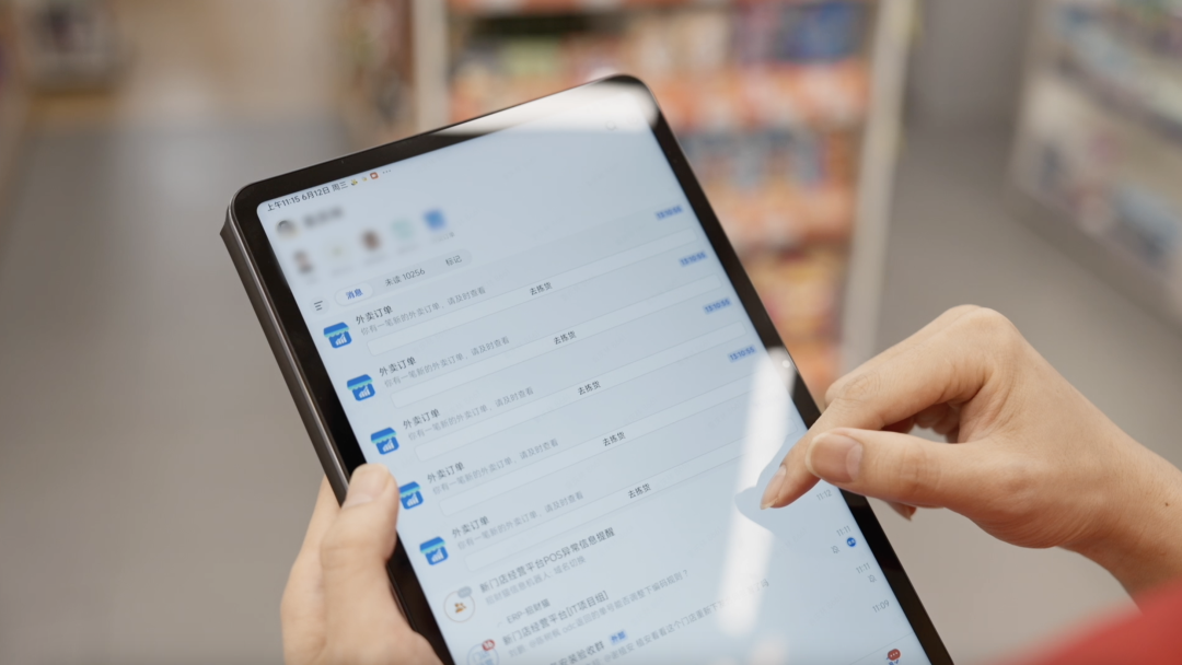 飛書也為美宜佳的外賣場景提供了一站式方案:語音提示、接訂單、處理訂單、配送揀貨一系列流程都能在飛書進(jìn)行。