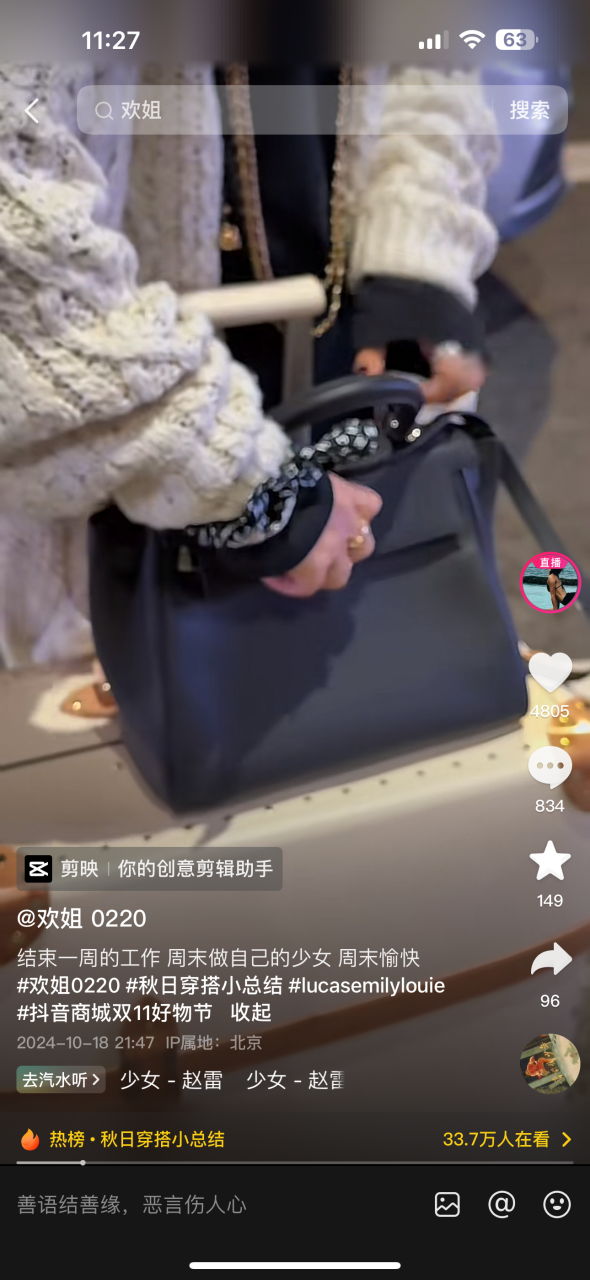抖音電商的朋友告訴我,消費(fèi)者養(yǎng)成在抖音電商購買服飾的習(xí)慣,最核心標(biāo)志就是會(huì)主動(dòng)搜索相關(guān)的時(shí)尚內(nèi)容。這次雙11“冬裝上新”品類日期間,#冬日上新穿搭指南、#大牌配飾必買清單、#大牌鞋包必買清單相關(guān)搜索話題熱度高達(dá)數(shù)億次。而今年,抖音電商搜索商品卡PV增長了67%,由此帶來的搜索GMV也保持114%的高速增長1。