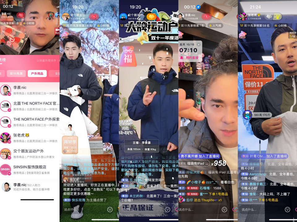 10月21號(hào),“冬裝上新”品類日期間 ,北面發(fā)售24年冬款新品三合一羽絨服,單日銷售破2000萬元。李晨Nic&北面合作專場直播,將冬款新品作為主推款,單場GMV突破3000萬元,達(dá)播矩陣?yán)塾?jì)達(dá)成超6000萬元。在搶先期,北面沖鋒三合一單品在抖音電商給出了全網(wǎng)獨(dú)家價(jià),成功孵化成為一款千萬級爆款單品。