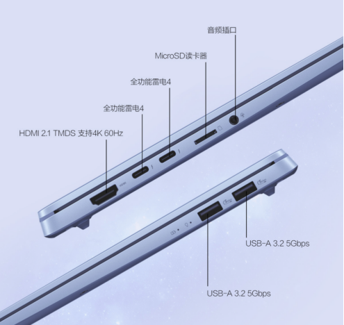 兩側(cè)接口也是非常豐富,雙全功能雷電4、HDMI 2.1 TMDS、MicroSD讀卡器,再加上兩個USB-A接口,絕大多數(shù)設(shè)備外連、數(shù)據(jù)傳輸需求都能滿足。