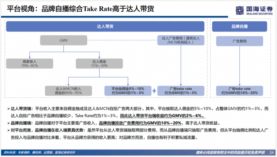 而商家自播不再有“坑位費”一說,除了一定比例的代運營傭金之外,企業(yè)或運營機構投出的廣告費全部流向平臺,貨幣化率就提高了。
