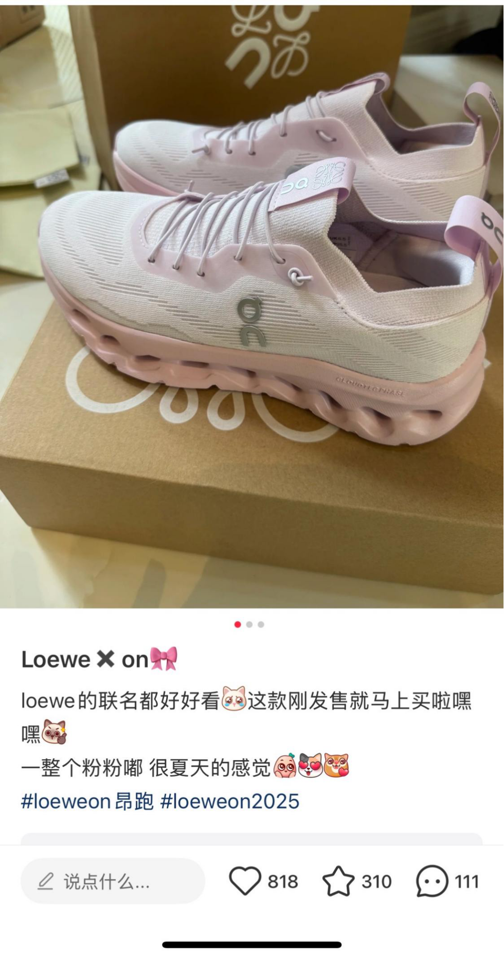 時尚維度,On昂跑通過與Loewe、Post Archive Faction等品牌的持續(xù)聯(lián)名,以及Zendaya的代言合作,成功將“功能運動”重塑為“優(yōu)雅生活方式”。這種跨界策略不僅幫助品牌進入高端零售與潮流文化語境,更強化了“高性能+時尚度”的雙重定位。