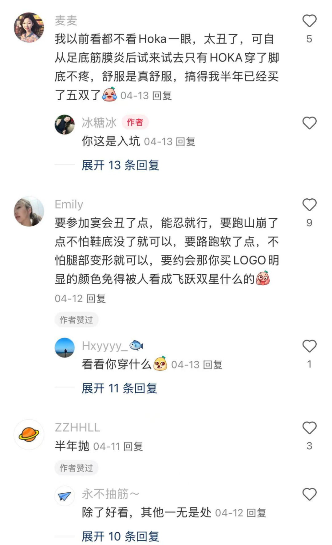 超厚的中底挑戰(zhàn)了主流審美,但架不住它實在舒服,反而意外成為打工人的“通勤神鞋”。在上海某三甲醫(yī)院工作的護士小林說:“每天要在病房走2萬步,試過很多品牌,最后發(fā)現還是HOKA的支撐性最好,腳不會痛。”