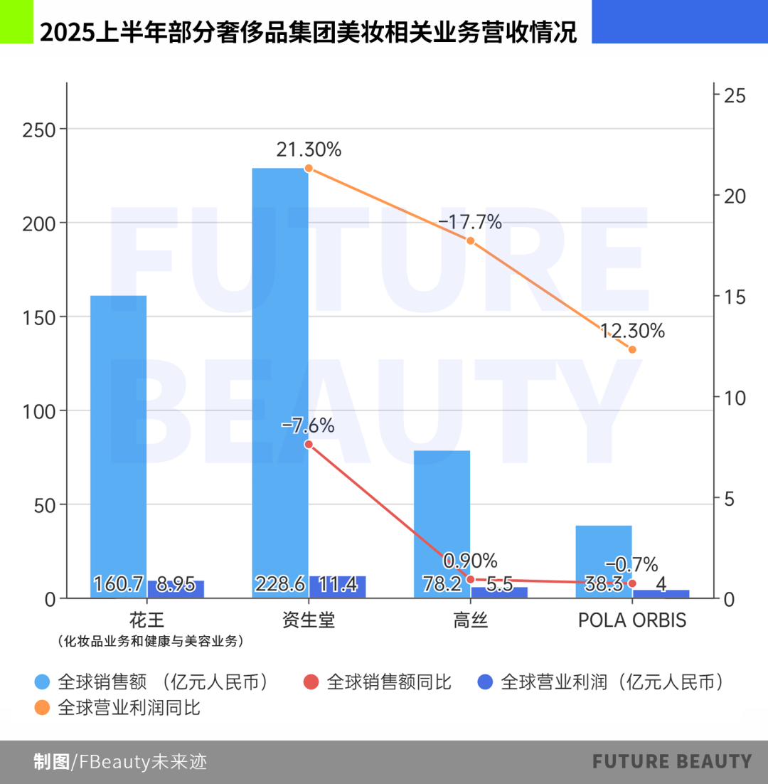 從2025年上半年的財(cái)報(bào)數(shù)據(jù)看,日妝巨頭們?cè)谥袊@個(gè)關(guān)鍵市場(chǎng)仍未走出困境:資生堂中國在去年轉(zhuǎn)為增長(zhǎng)后再回跌10%、高絲中國業(yè)務(wù)下滑7.3%,POLA更因中國市場(chǎng)疲軟導(dǎo)致凈利潤大跌38%。