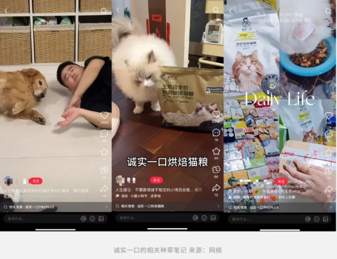 用戶很難記住幾個(gè)品牌的蛋白質(zhì)含量,但很可能記得住一條狗狗吃到美食后瘋狂搖尾巴的視頻,或一個(gè)關(guān)于“挑食小貓終于愛上吃飯”的暖心故事。