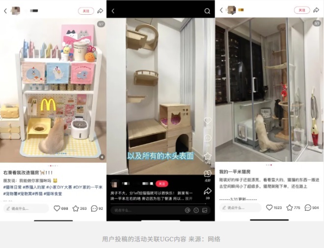 比如皇家發(fā)起“家的一平米”活動(dòng)時(shí),先定位養(yǎng)寵+家居美學(xué)的交叉興趣用戶,將打造1平米專屬寵物空間的創(chuàng)意精準(zhǔn)推送給目標(biāo)人群,引導(dǎo)用戶打開場(chǎng)景想象,后續(xù)聯(lián)動(dòng)寵物商超的采購(gòu)真人大秀,進(jìn)一步匹配寵物消費(fèi)+生活儀式感標(biāo)簽的用戶,激發(fā)用戶參與欲與分享欲。