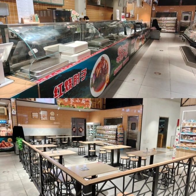 但另一細節(jié)仍暴露短板:探店時為下午兩點左右,益安店的快餐餐飲區(qū)已打烊收攤,用餐區(qū)亦無顧客。對比來看,多數(shù)新商超的快餐餐飲區(qū)幾乎全天營業(yè),更貼合消費者即時性用餐需求。