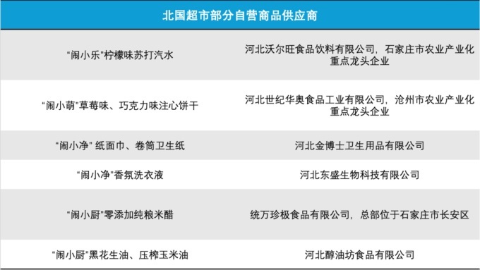 圖:北國超市部分自營商品供應商