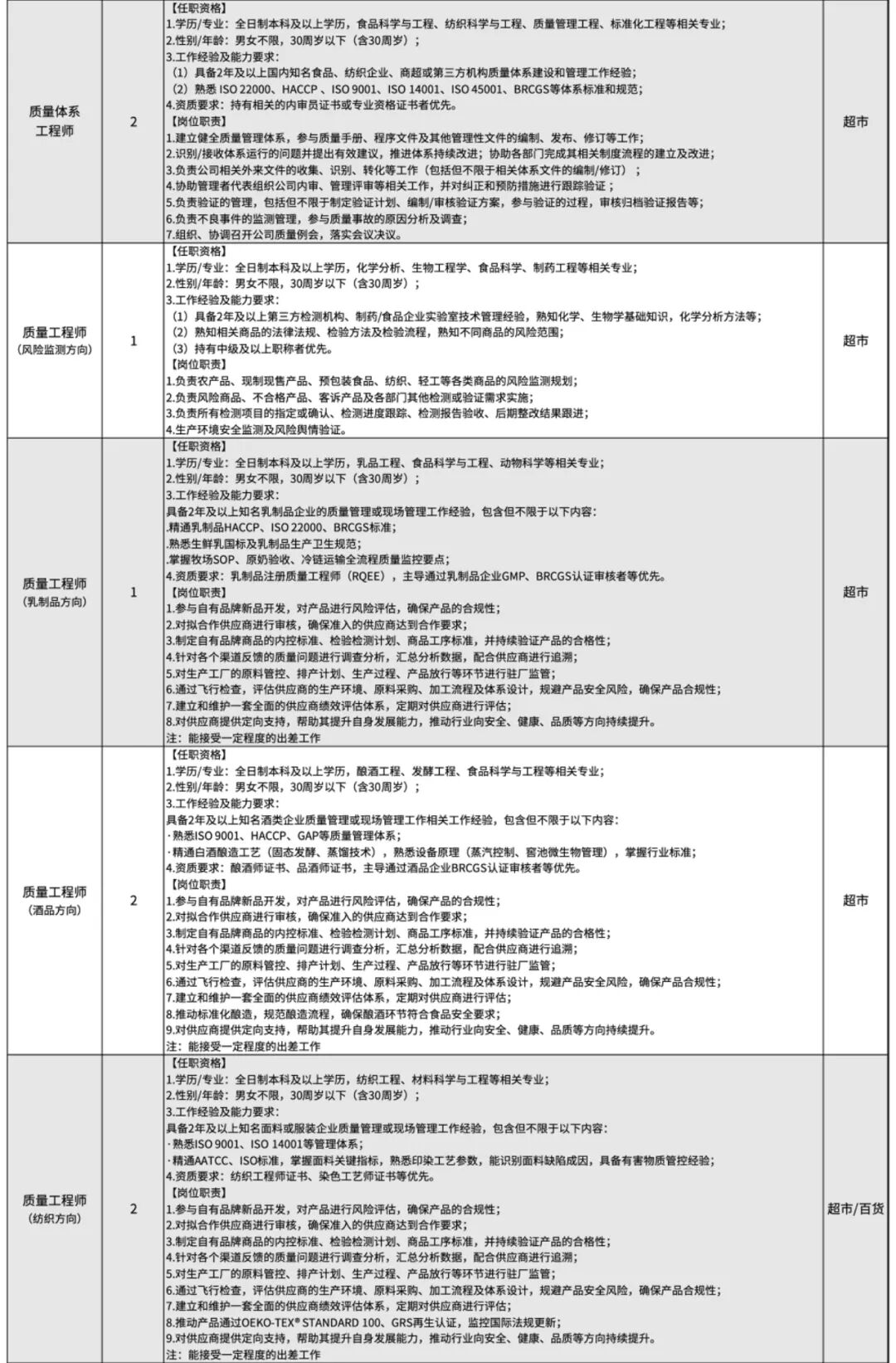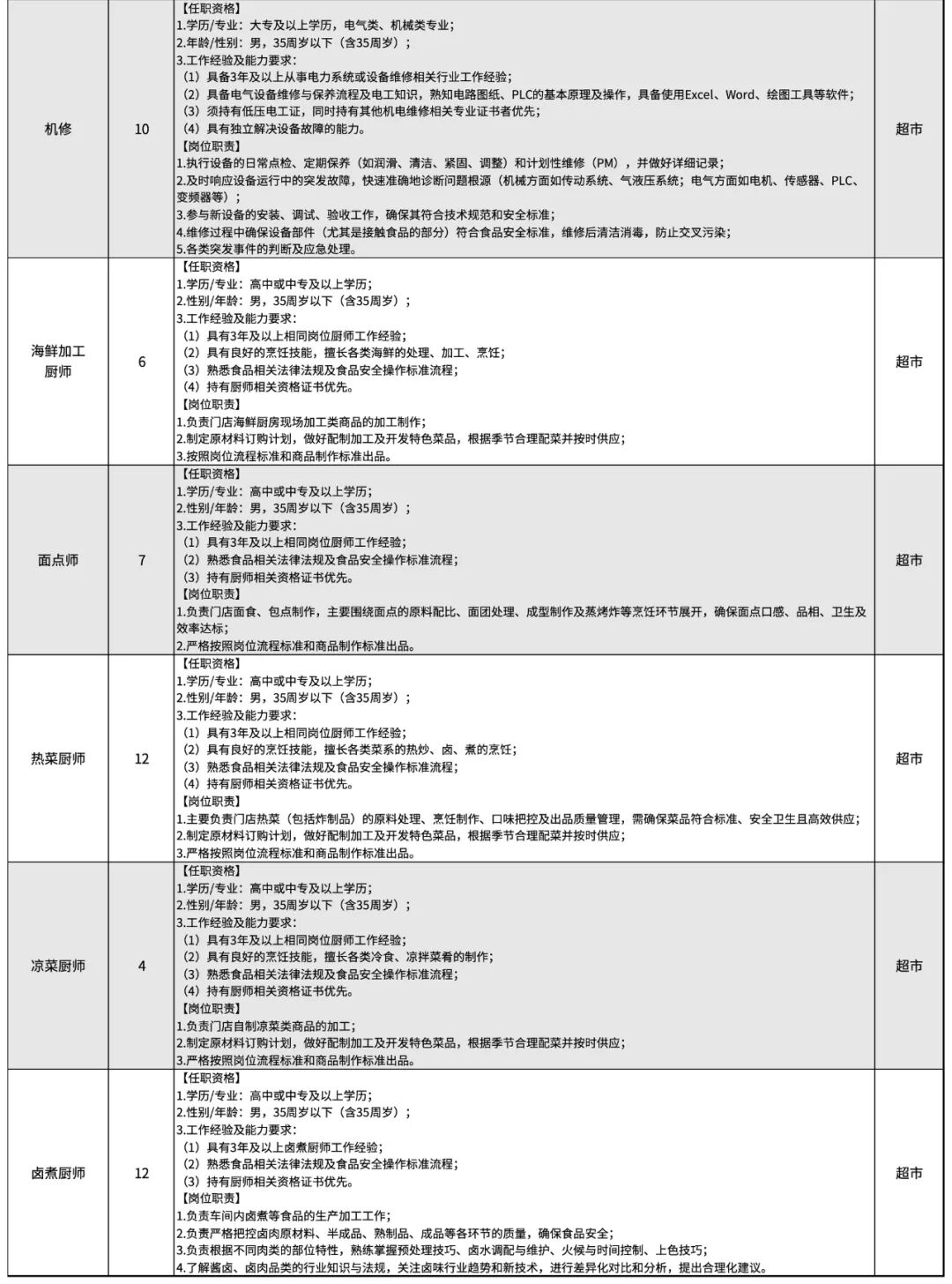 許昌胖東來招聘崗位一覽: