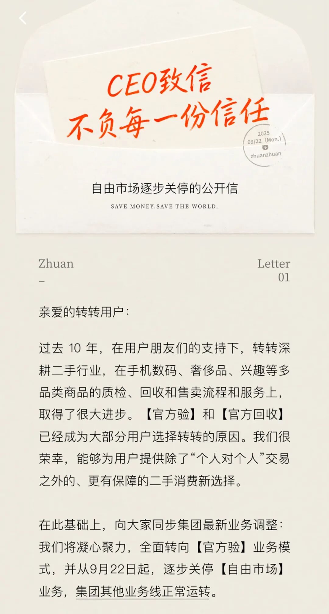 9月22日,轉(zhuǎn)轉(zhuǎn)集團(tuán)官方宣布,將逐漸關(guān)停旗下“自由市場”,即C2C業(yè)務(wù),轉(zhuǎn)而全力聚焦二手“官方驗(yàn)”業(yè)務(wù)模式。這個(gè)曾讓轉(zhuǎn)轉(zhuǎn)起家的業(yè)務(wù),最終以GMV占比不足3%的姿態(tài)謝幕。