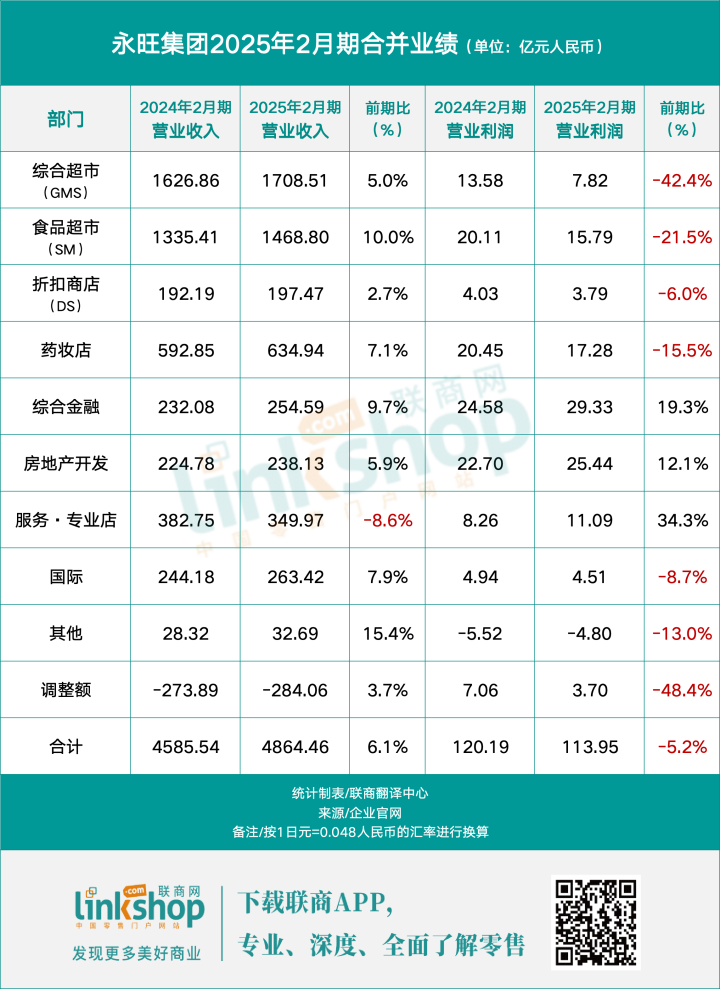 截至2025年2月財(cái)年,永旺集團(tuán)營(yíng)業(yè)收入首次突破10萬(wàn)億日元(約4864億人民幣),但營(yíng)業(yè)利潤(rùn)卻同比下滑5.2%,呈現(xiàn)“增收不增利”的態(tài)勢(shì)。在這樣的背景下,My Basket的表現(xiàn)顯得格外亮眼。