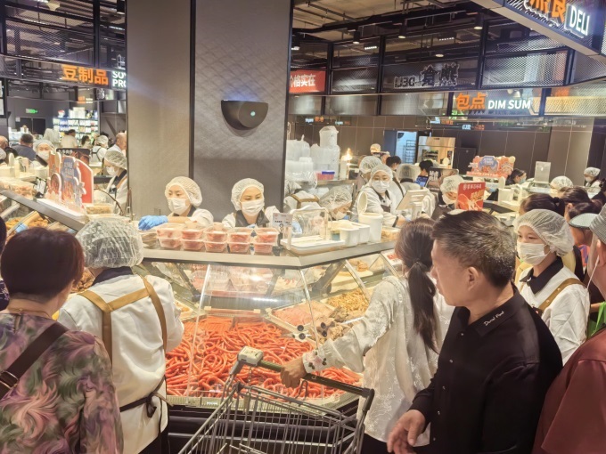 熟食區(qū)主推奧爾良烤雞、韓式炸雞、進口三文魚、雙匯熱鹵甜腸,更契合綦江飲食口味推出膠原滿滿的香辣豬蹄,軟糯Q彈、麻辣鮮香,以及香辣豬耳朵、YH涼拌菜、麻辣面爪等本土風(fēng)味產(chǎn)品。