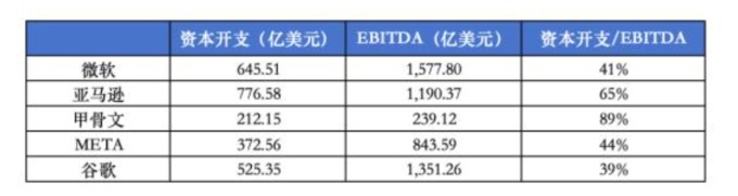 圖:海外巨頭最新財(cái)年資本開支(現(xiàn)金流量表口徑)、EBITDA測(cè)算資料來(lái)源:Wind,36氪整理