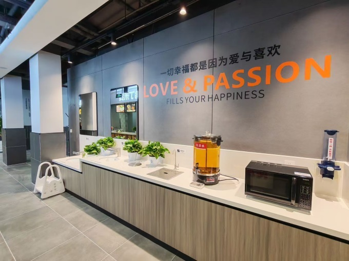 真實(shí)惠通過對(duì)操作間、后倉、設(shè)備間的系統(tǒng)性規(guī)劃,構(gòu)建“以人為本”的工作環(huán)境,切實(shí)減輕員工勞動(dòng)強(qiáng)度,以此傳遞對(duì)員工的深度關(guān)愛。例如:將操作間(如生鮮加工區(qū)、熟食制作區(qū))與銷售區(qū)近距離銜接,縮短員工取貨、補(bǔ)貨的往返距離。例如,生鮮區(qū)操作間緊鄰陳列柜,員工無需長距離搬運(yùn)食材,既節(jié)省體力,又提高加工效率。同時(shí),按“加工-存儲(chǔ)-銷售”的流程邏輯布局設(shè)備與工作臺(tái),避免員工交叉作業(yè)和重復(fù)移動(dòng),降低勞動(dòng)強(qiáng)度。