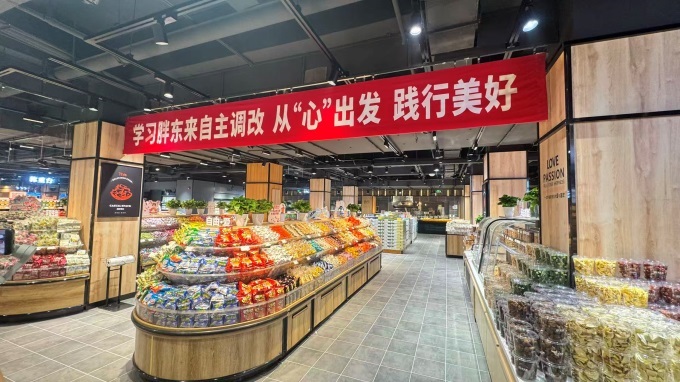 此次調(diào)改,門店累計(jì)淘汰下架原有單品6183支,淘汰率高達(dá)61.35%,同時(shí)重新引進(jìn)3000余支新品,涵蓋一線知名品牌,以及地方特色商品、各地風(fēng)味美食和進(jìn)口商品,最終形成8000支SKU的精選商品矩陣,商品結(jié)構(gòu)達(dá)到胖東來80%對(duì)標(biāo)。