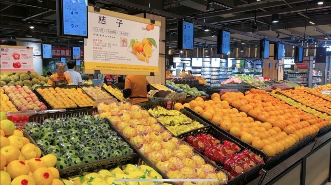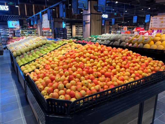 生鮮蔬果區(qū)域采用“動(dòng)線分明”的布局,將時(shí)令蔬果、進(jìn)口精品、精品凈菜、預(yù)包裝果切等進(jìn)行分區(qū)陳列,方便顧客挑選。果切臺(tái)采用全新封閉防塵空間設(shè)計(jì),從切配到存放全程防護(hù),有效隔絕外界污染,讓顧客可以放心食用鮮切水果。
