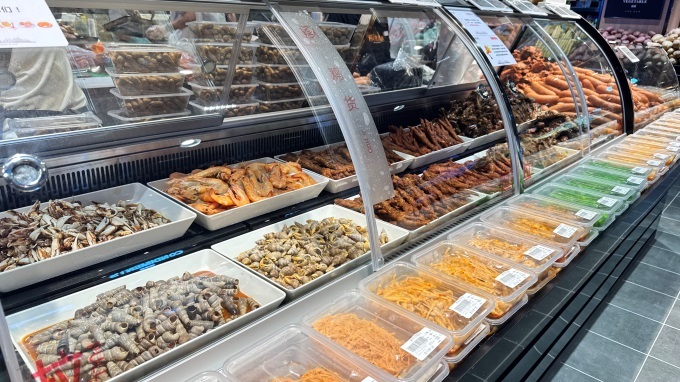 此次調(diào)改,門店將加工板塊營業(yè)面積擴(kuò)大至370平方米,采用“明檔結(jié)合明廚亮灶”的設(shè)計(jì),讓顧客可以直觀看到加工間的操作全過程。新增手工制作灌腸、現(xiàn)場煎炸魚類、烤披薩、壽司等多個(gè)品類。