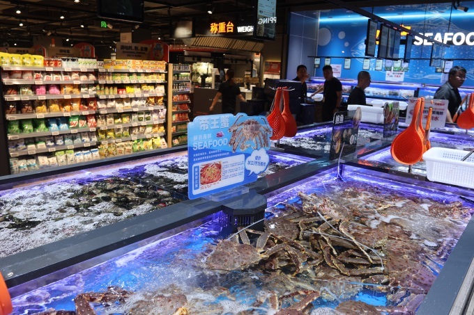水產(chǎn)類主推佩戴官方溯源蟹扣、保真;畋r(jià)的陽(yáng)澄湖大閘蟹,以及源自挪威純凈深海、確保E+級(jí)高品質(zhì)的冰鮮三文魚,為中秋家宴提供上佳之選。
