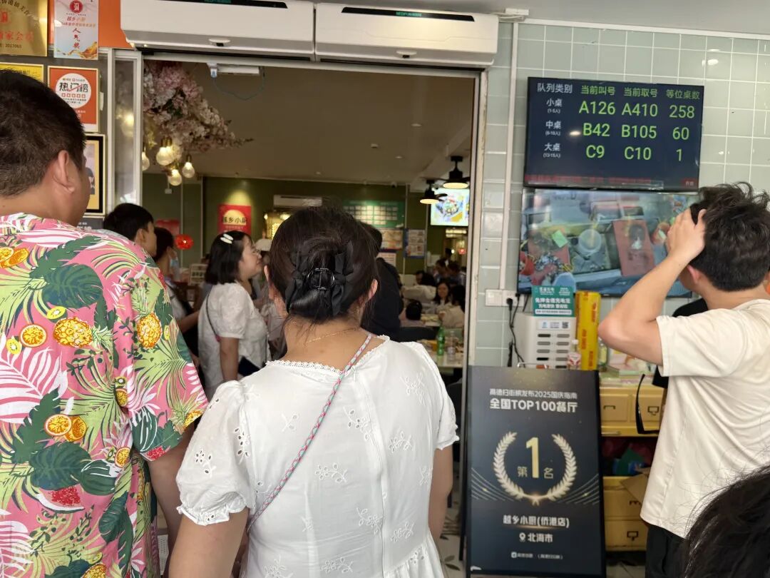 國慶假期以來,因?yàn)樯习瘢洁l(xiāng)小廚的生意比往年更加火爆。有很多顧客看到“全國第一”慕名而來。10月2日晚7點(diǎn),越鄉(xiāng)小廚已經(jīng)排到700多號(hào),而店里只有65張桌子。為了保證顧客體驗(yàn),老板不得不停止叫號(hào)。