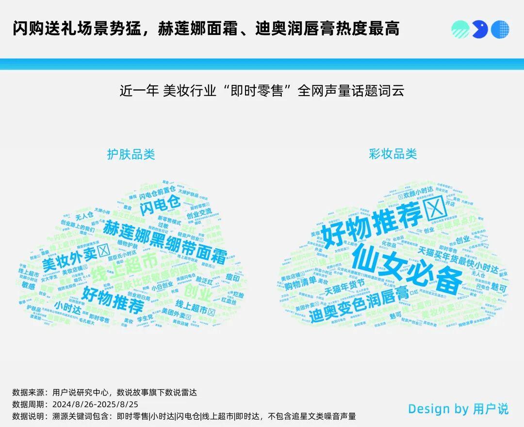 再看消費(fèi)者端,選擇美妝即時(shí)零售,根本是“快”和“場(chǎng)景”兩個(gè)需求在推著走。以前網(wǎng)購(gòu)護(hù)膚品,等個(gè)2-3天是常態(tài),但外賣(mài)大戰(zhàn)里,平臺(tái)拼速度、拼補(bǔ)貼,讓O2O的“即時(shí)可得”成了新習(xí)慣——試過(guò)30分鐘就能拿到急需的護(hù)膚品,誰(shuí)還愿意再等好幾天?