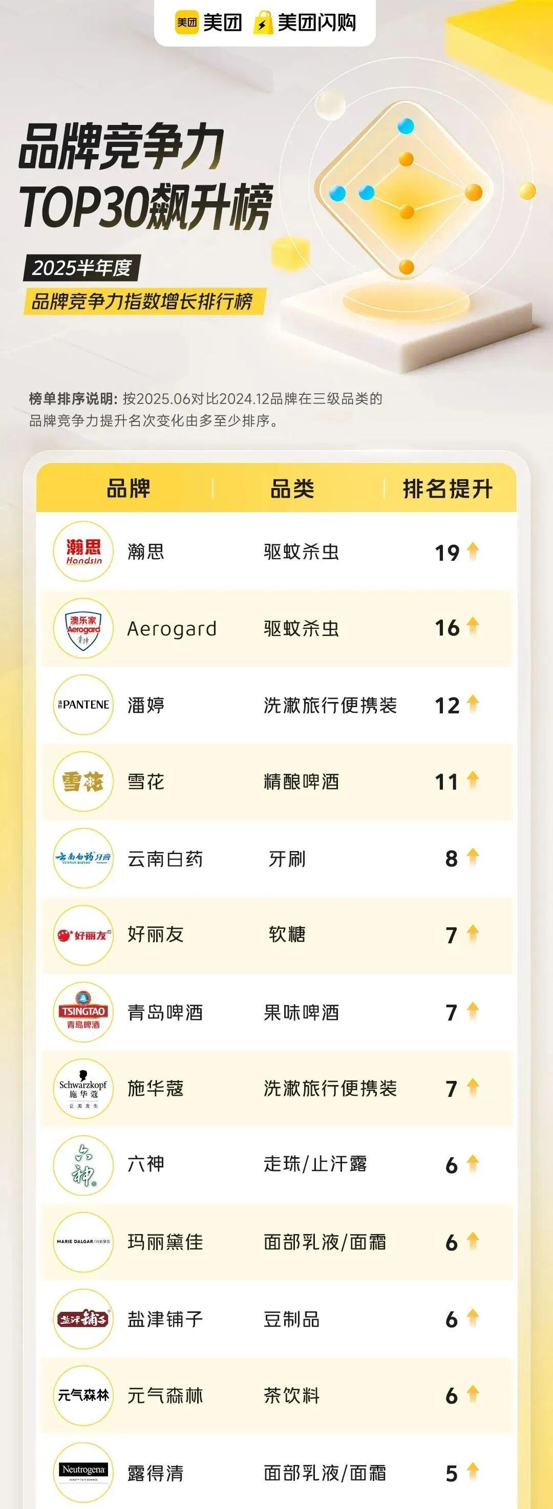 這促使各大平臺(tái)積極布局美妝即時(shí)零售,而其銷售成績(jī)又有力佐證了其潛質(zhì)。美團(tuán)從2022年就開(kāi)始孵美妝閃電倉(cāng),到2025年8月已經(jīng)有4000家店覆蓋297個(gè)城市,《2025半年度品牌競(jìng)爭(zhēng)力TOP30飆升榜》里12個(gè)都是美妝個(gè)護(hù)品牌。
