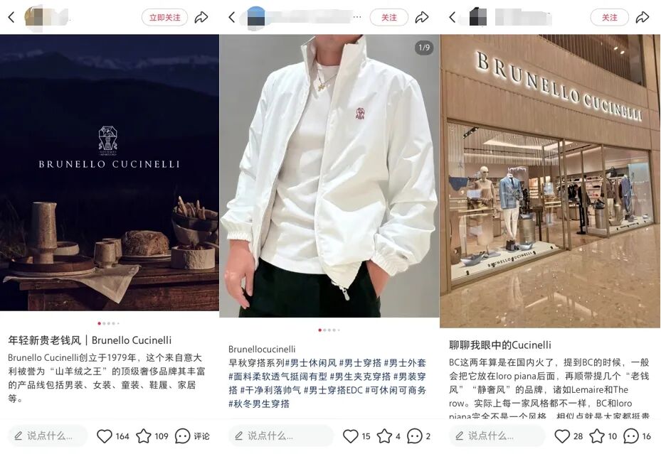 社交媒體上關(guān)于Brunello Cucinelli的討論增加 圖源:小紅書