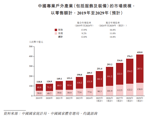 灼識咨詢資料顯示,于2024年零售額計,坦博爾是中國第四大本土專業(yè)戶外服飾品牌。結(jié)合公開資料,上榜的應(yīng)該還有波司登、凱樂石、伯希和等中國品牌。