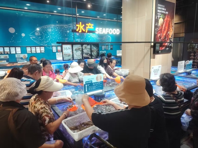 服務品質(zhì)同步躍升,肉禽柜臺提供個性化加工服務,切絲、切片、絞肉、剝皮等服務一應俱全;海鮮區(qū)域針對高端品類推出清洗、打氧等增值服務,讓顧客享受從選購到處理的全流程便利。