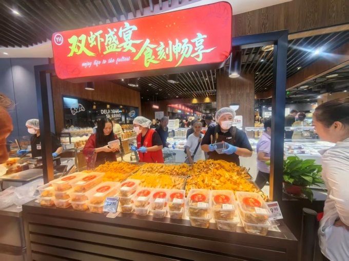 熟食主打永輝開心栗、椒鹽蹄膀、避風塘梭子蟹與避風塘羅氏蝦,其中梭子蟹經(jīng)過去內(nèi)臟處理,只保留肉質(zhì)最鮮美的部分;羅氏蝦則精選每只可達50g以上的大蝦,全活蝦加工,確保蝦肉厚實、口感Q彈。