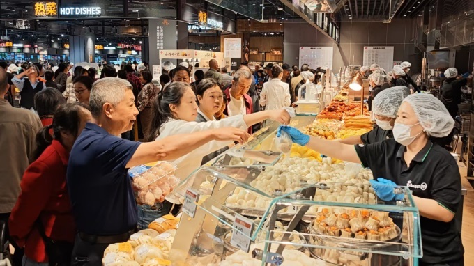 另外,過去永輝等傳統(tǒng)超市不夠重視的熟食、烘焙和鮮食區(qū),在胖改店中都做了極大調(diào)改,不僅區(qū)域有所擴容,而且永輝將部分炸物、現(xiàn)烤熟食的制作流程放到店內(nèi),讓顧客能感受到“肉眼可見”的鮮食煙火氣,這與發(fā)布會重點推出的“永輝定制”鮮食品類形成呼應(yīng)。