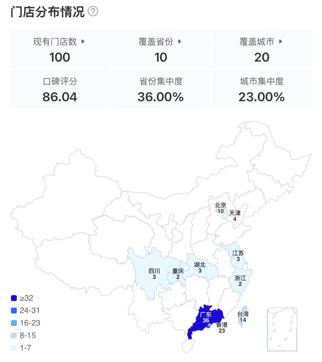 不過(guò),即便在國(guó)內(nèi)持續(xù)開(kāi)店,但目前,以廣東為主的華南區(qū)域仍是壽司郎在中國(guó)的大本營(yíng)。窄門(mén)餐眼的數(shù)據(jù)顯示,壽司郎在廣東擁有36家門(mén)店,占比達(dá)到36%。