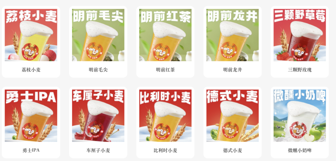 正因如此,福鹿家處處滲透著濃厚的“蜜雪基因”。從品牌定位看,福鹿家打出“成年人的奶茶,叫做微醺快樂”的口號,直接錨定與蜜雪重疊的年輕客群。天下網(wǎng)商發(fā)現(xiàn),為貼合年輕客群,降低飲用門檻,它將酒精度控制在2.3—5度,開發(fā)果啤、奶啤等有清甜口感的品類。價格上也貫徹平價策略:5.9元的基礎(chǔ)鮮啤、8.8元的茶啤、9.9元的果啤,即便最貴的區(qū)域限定款也僅14.9元,比多數(shù)同賽道品牌低出30%—40%。