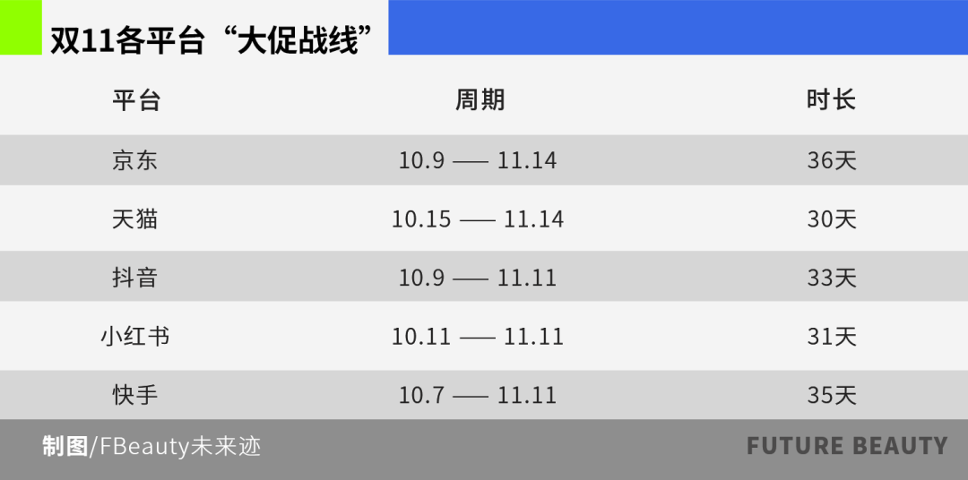 變的是節(jié)奏策略:戰(zhàn)線再度拉長,從各平臺(tái)預(yù)售期算起,整個(gè)大促周期普遍超過30天,最長甚至達(dá)到36天,堪稱史上最長“雙11”。